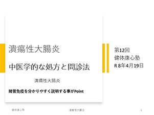 第12回目の健体康心塾は『潰瘍性大腸炎』をテーマに講義をしていただきました。